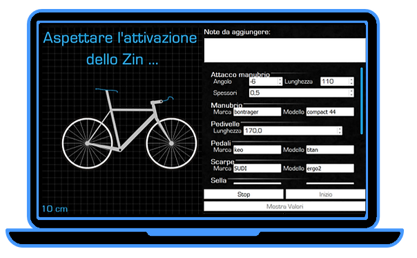 Una volta definite le modifiche vengono rilevate le quote della bicicletta utilizzando lo strumento ZIN.